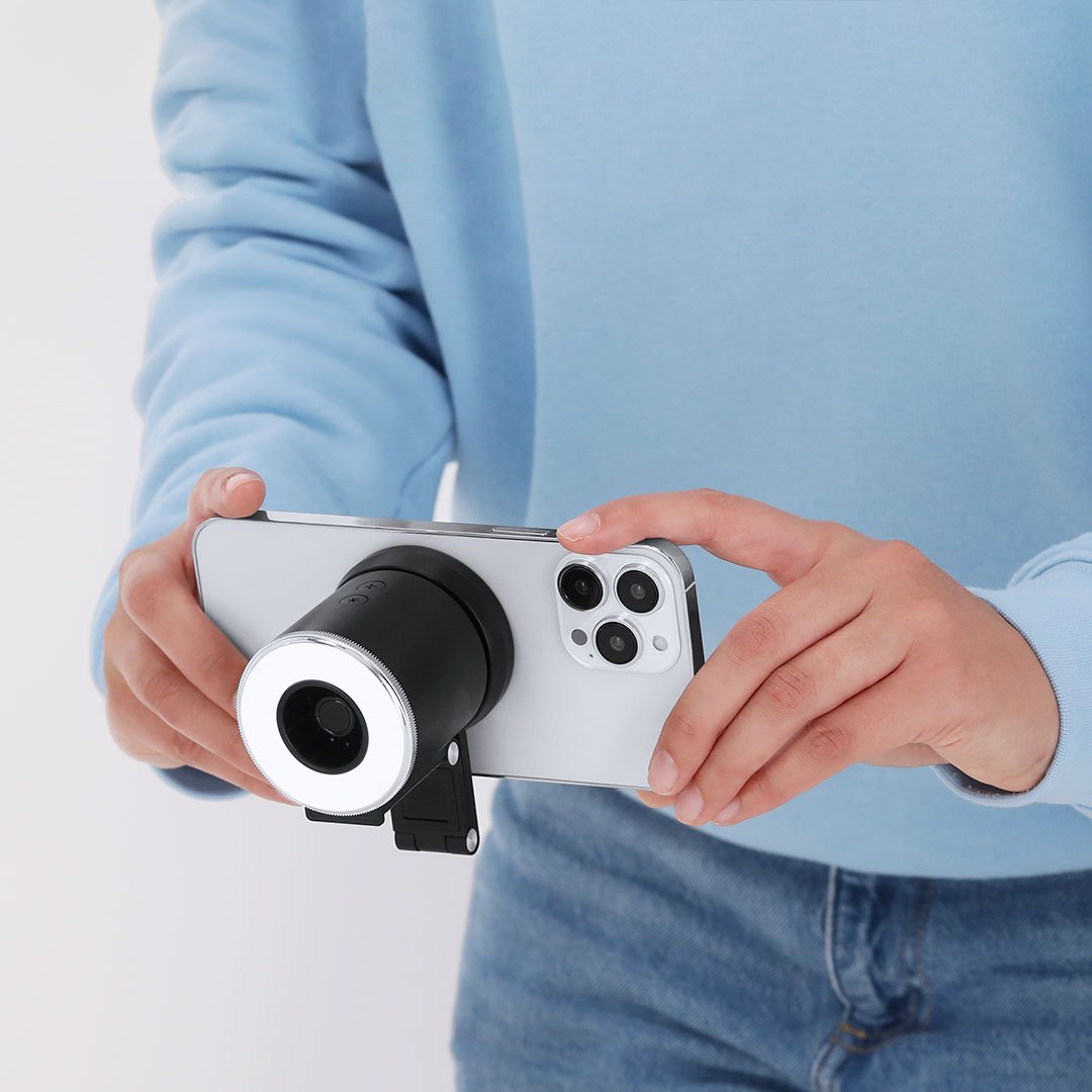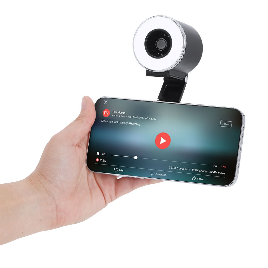 Anillo de luz con ventilador fabricado en resistente ABS con acabado mate. Incluye soporte magnético multiposición extensible para smartphone. Ventilador con 3 velocidades con opción a cambio a través de botón. El anillo de luz cuenta con 16 LEDs con opción a 3 niveles de intensidad de luz. Incluye botón de encendido y apagado, control de luz y velocidad. Batería de 500mAh recargable por cable de carga tipo C incluido, 5V.
