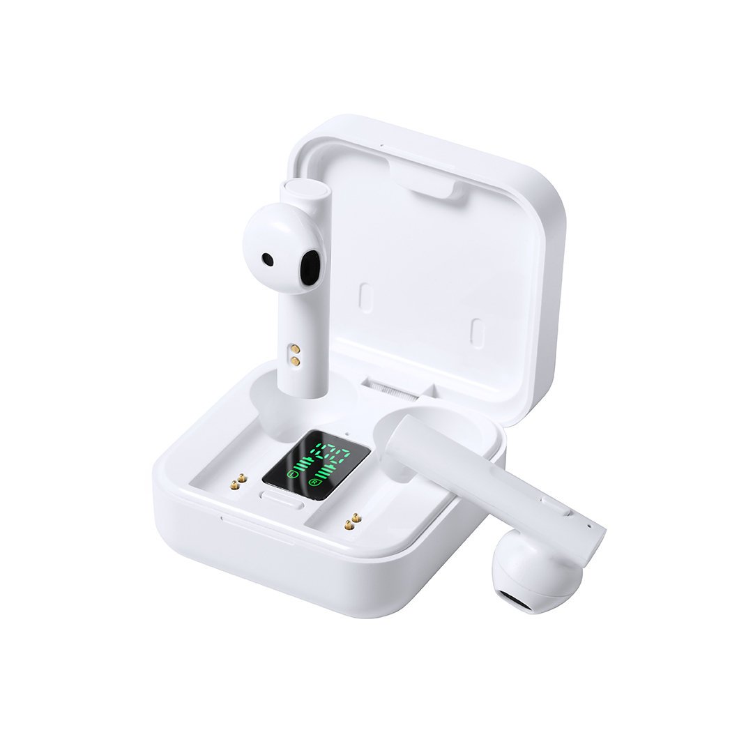 Auriculares intraurales en elegante acabado blanco y conexión Bluetooth 5.0. Con panel de carga solar integrado en la tapa y pantalla LCD interior con indicador de estado de carga. De diseño ergonómico, incluyen botón de control integrado en el auricular, con base a juego. Función manos libres y recargables con energía solar o mediante cable micro USB -incluido-. Presentados en estuche individual premium con apertura de bisagra y en atractiva caja de diseño, con manual de instrucciones en español e inglés.