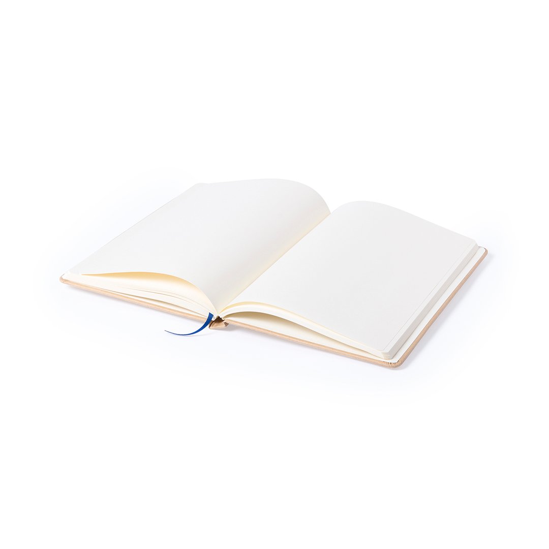 Bloc de notas A5 con tapas duras en resistente cartón reciclado. De 100 hojas blancas lisas y banda elástica para su cierre. Disponible en variada gama de colores.