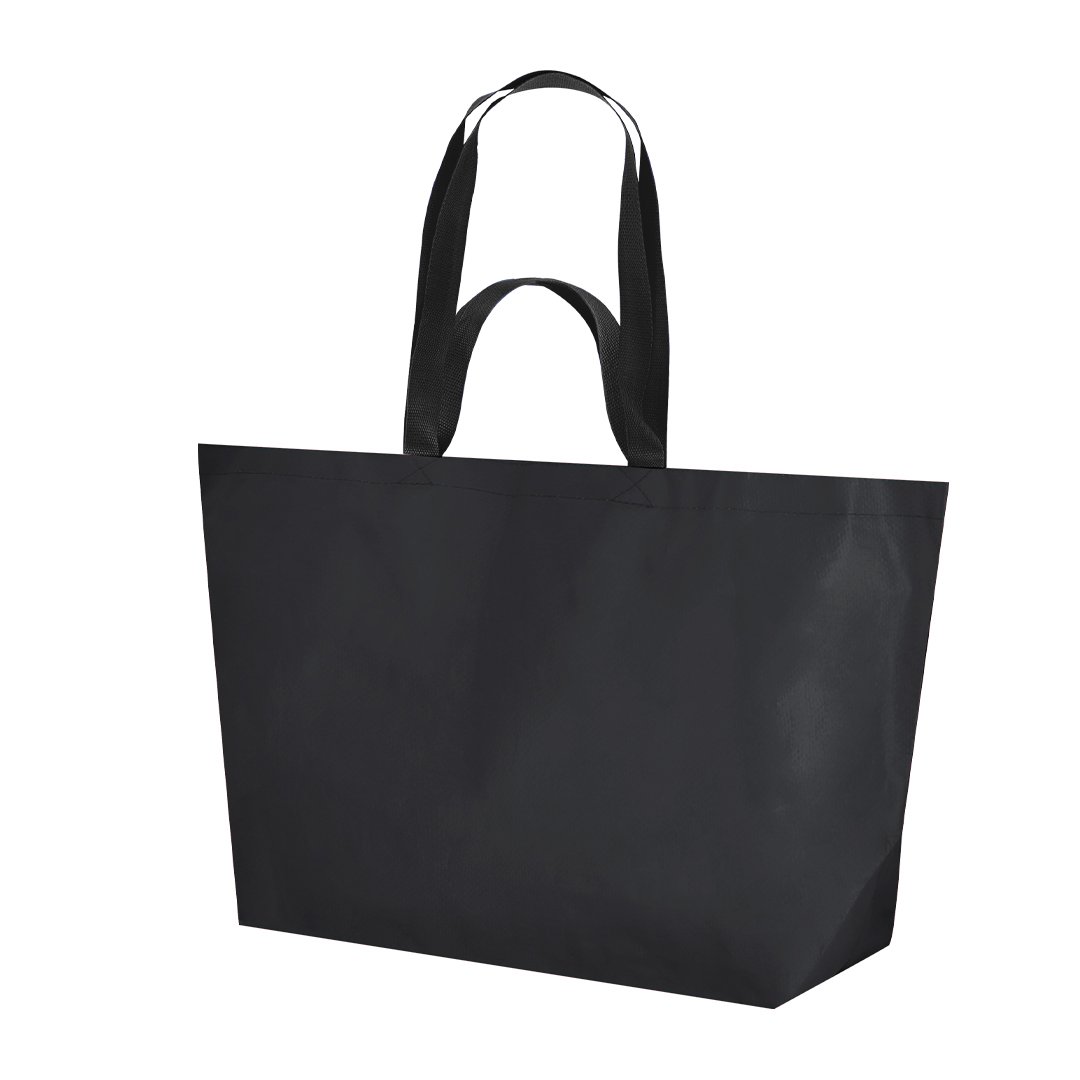 Bolsa fabricada en pp-woven laminado de gran capacidad. Con doble asas, cortas de 44x3cm y largas de 77x3cm reforzadas con costura en X y resistencia de hasta 10kg