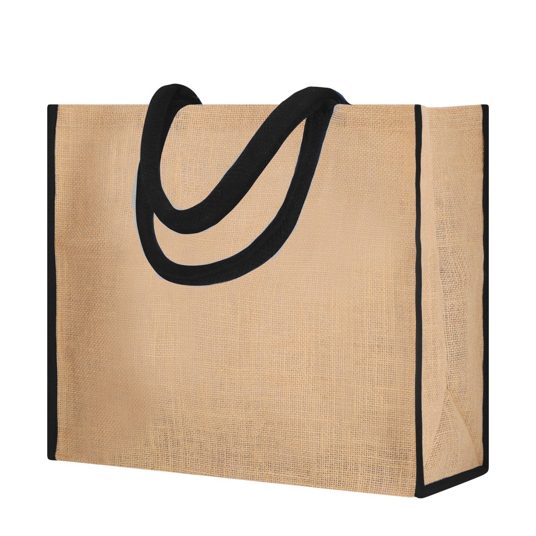 Bolsa confeccionada principalmente en Yute de 300 g/m2. De práctico y moderno diseño, incorpora asas cortas reforzadas. Fuelle en base y laterales. Incluye cierre de velcro seguridad.