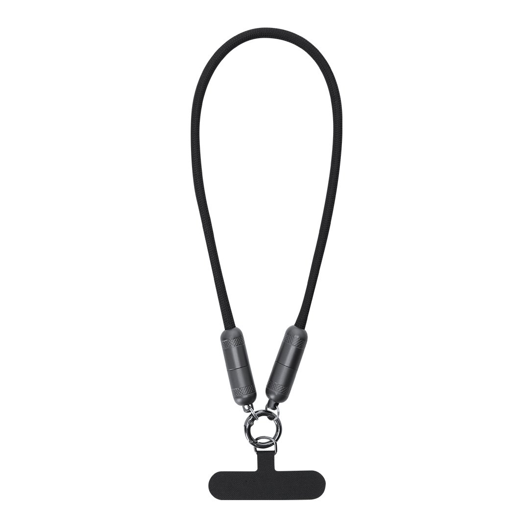 Lanyard cable de carga con función de transferencia de datos y soporte para móvil. Con entrada/salida Tipo C y capacidad de 60W , lo que permite una carga rápida. Funcionalidad y comodidad en un solo accesorio.