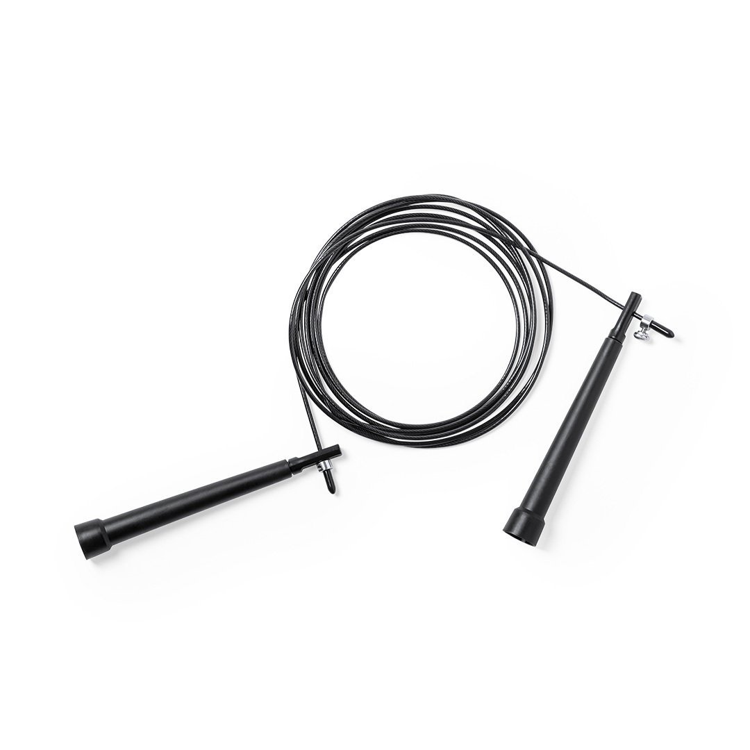 Comba de calidad premium, con cuerda extra larga ajustable de 3m de largo y fabricada en acero con cobertura de resistente PVC. Con mangos de sujeción ergonómicos y presentada en funda de poliéster RPET con cierre de cordón, elaborada a partir de plástico reciclado para así fomentar la reutilización de residuos plásticos y contribuir a la sostenibilidad del planeta. Etiqueta distintiva RPET en la funda.