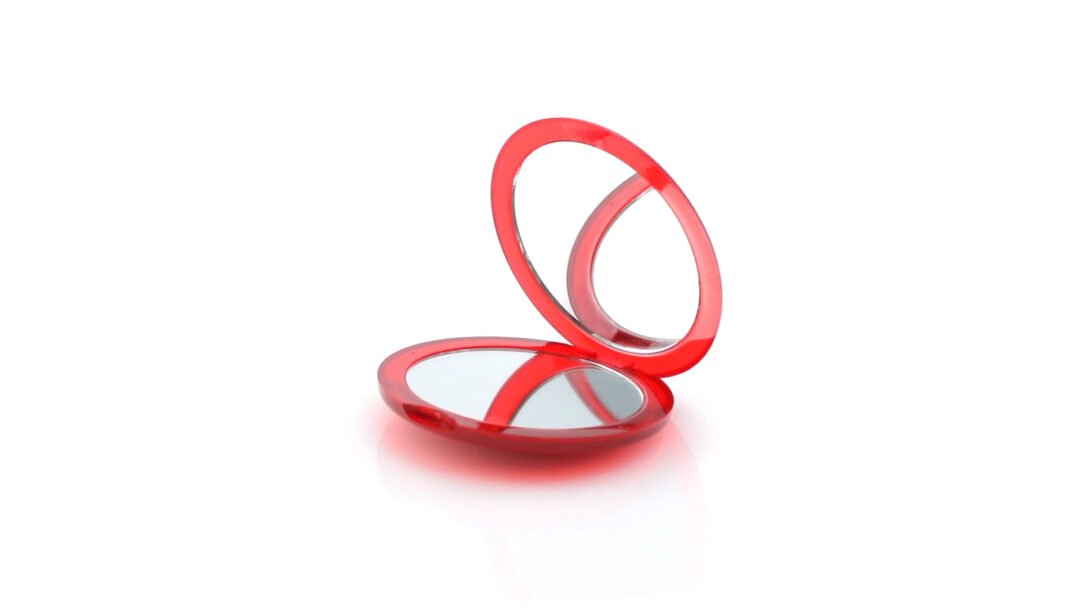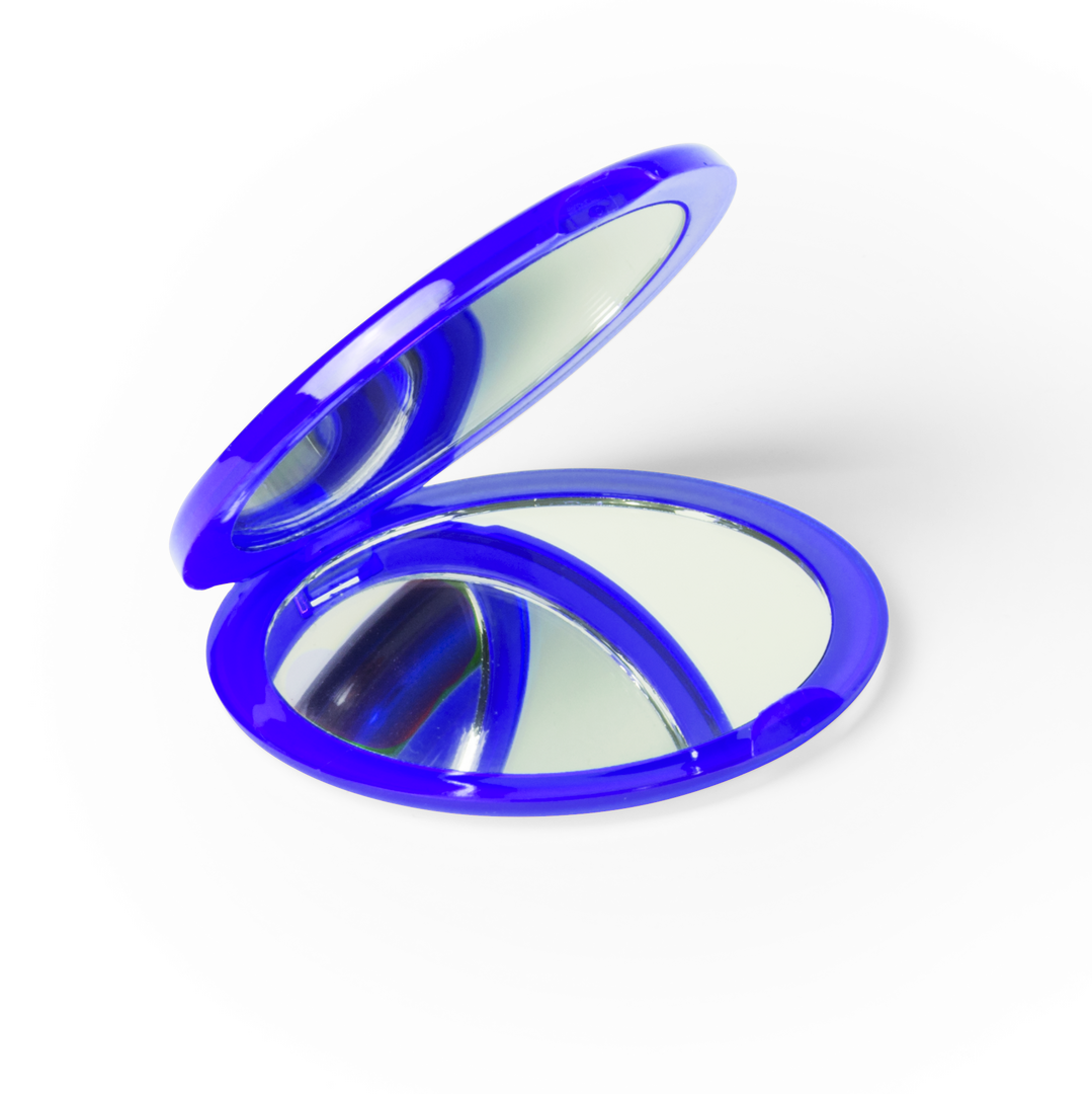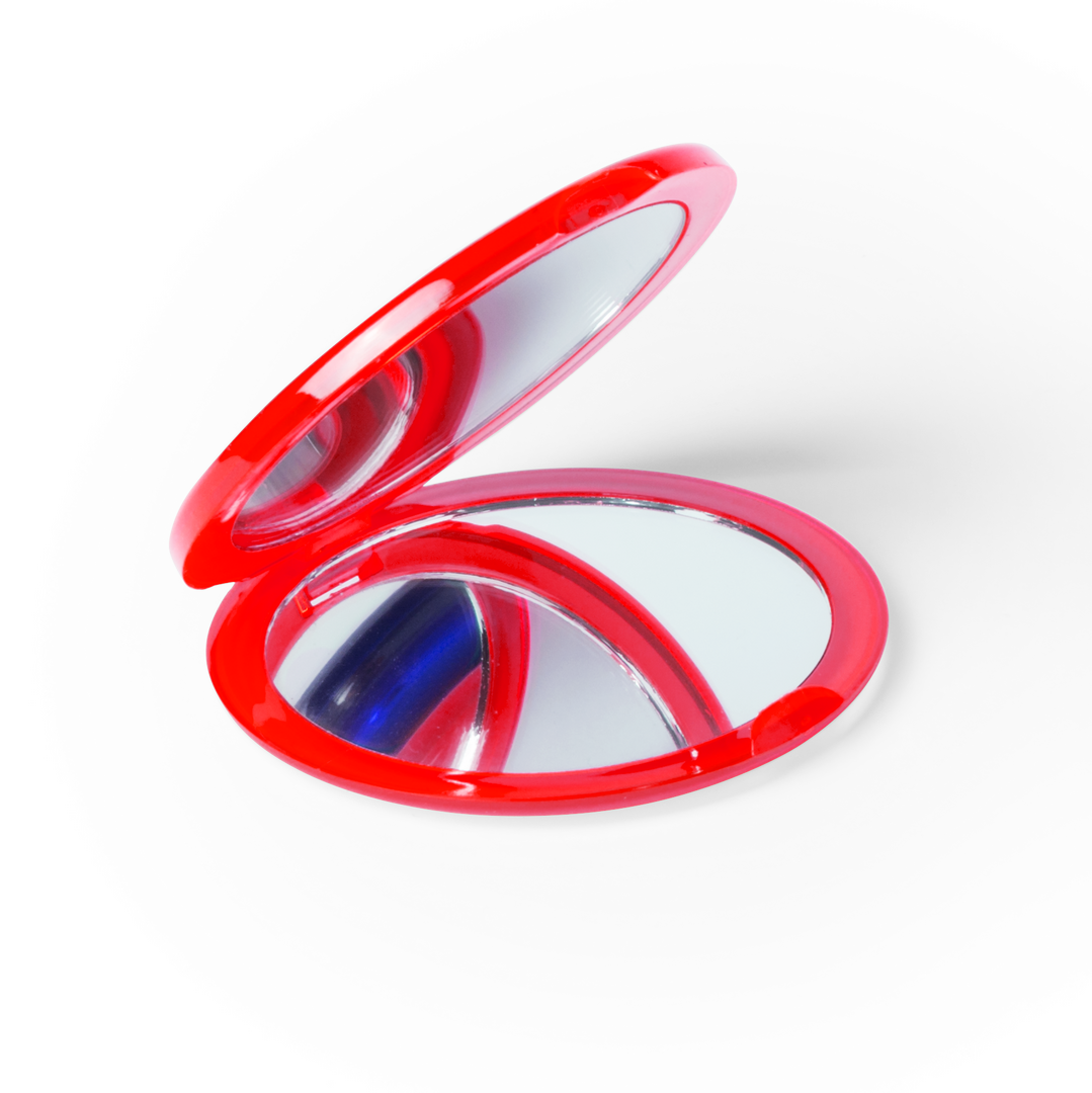 Espejo plegable en variada gama de vivos colores translúcidos con dos espejos interiores de aumentos 1x/2x.