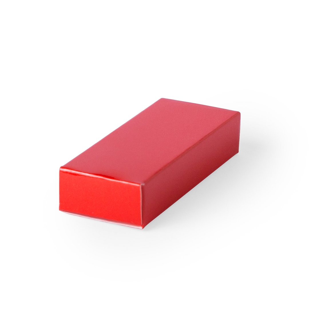Estuche de presentación para memoria USB en atrevidos colores y acabado en cartón brillante.