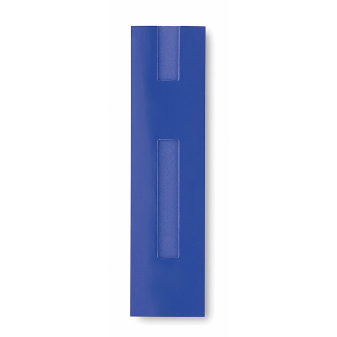 Funda para bolígrafo en resistente cartón de vivos colores y con diseño de ventana.