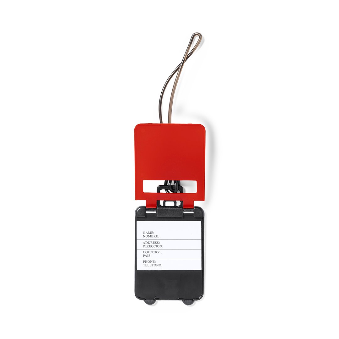 Original identificador de maletas de diseño de trolley en resistente material de combinación bicolor y extensa gama de vivos colores. Con resistente cinta de acople y tarjeta de identificación en castellano e inglés.