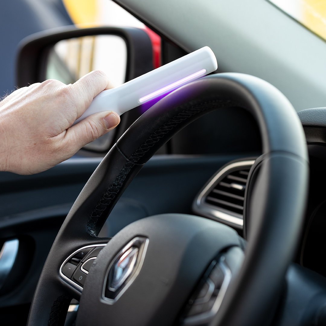 Lámpara esterilizadora de luz ultravioleta tipo C. Especialmente diseñada para la eliminación de microorganismos y bacterias en objetos de uso cotidiano como el smartphone, el carrito de la compra, el volante del coche o la ropa. Fácil de usar, basta con acercar la lámpara esterilizadora al objeto durante unos segundos, a una distancia de entre 1 y 2 cm. Potencia de bombilla 1W, longitud de onda de 254 nm y voltaje 3V, con alimentación a pilas (2xAAA no incluidas). Fabricada en resistente material ABS de acabado mate y presentada en atractiva caja individual de diseño. Disponible manual de usuario en español e inglés. Disponible certificación CE, RoHS y de efectividad germicida. Para un uso adecuado del producto, evitar el contacto con la piel y los ojos.