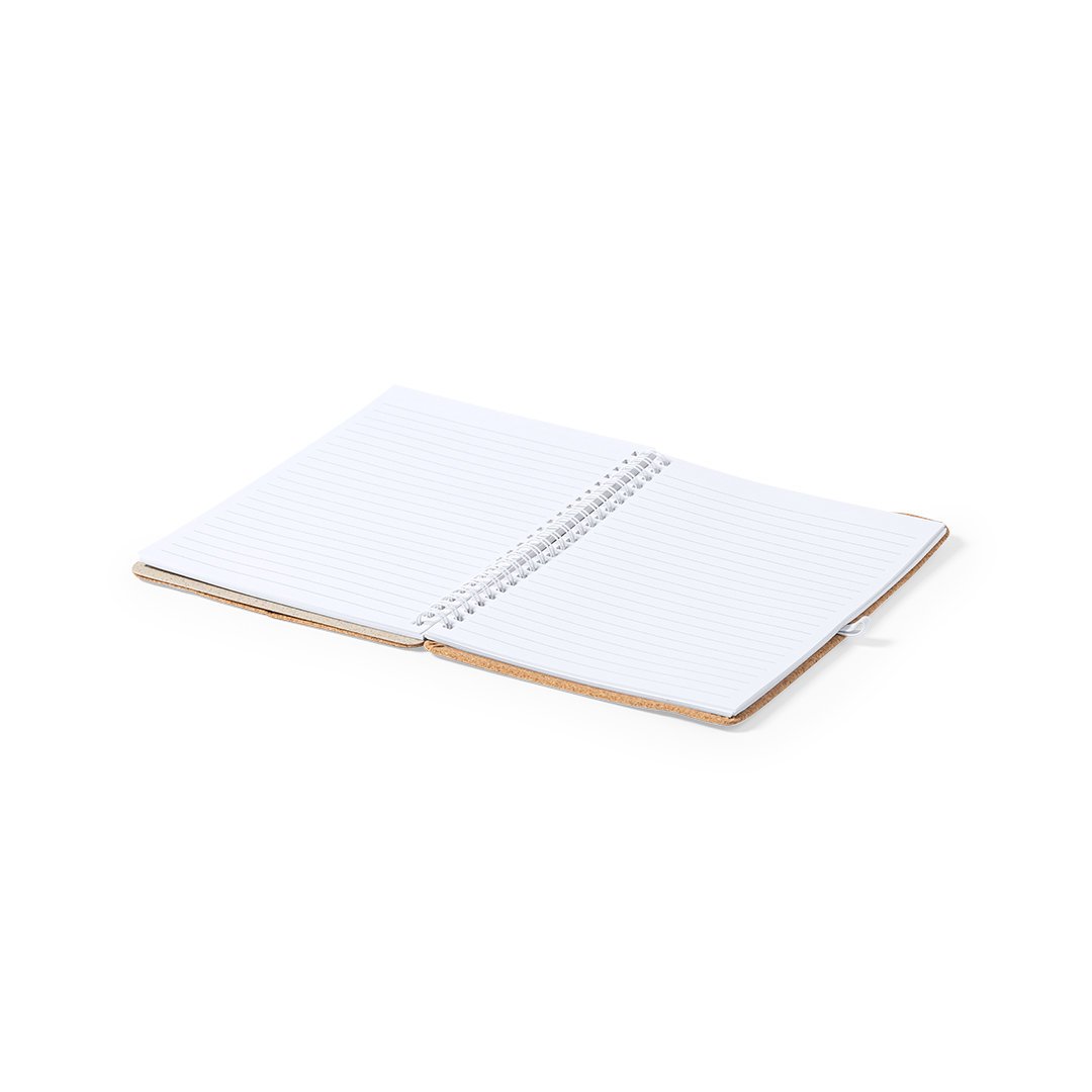Libreta soporte de anillas de línea nature. Tapas rígidas fabricadas en corcho natural, con original soporte en caña de trigo para smartphone y tablet. Incluye elástico de cierre y soporte para bolígrafo en color blanco. 70 hojas interiores con disposición a una raya. Presentada en bolsa individual de diseño.