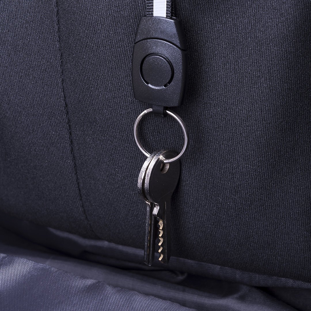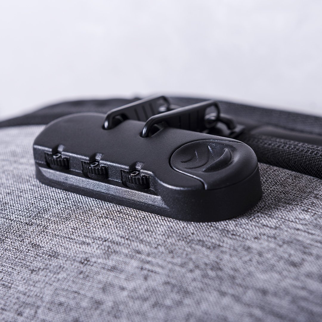 Mochila de negocios antirrobo repelente al agua en poliéster de alta calidad, resistente a cortes y a roces. Con candado de seguridad por contraseña, cinta reflectante trasera y accesorio para acople en trolley. Bolsillo antirrobo en la espalda para guardar objetos de valor. Compartimento interior con salida USB para conexión de powerbank -no incluido-, con cable micro USB de 1 metro de largo para total comodidad en la carga de cualquier dispositivo móvil. Salida para auriculares y bolsillo en cinta derecha con fácil acceso para tarjeta de transporte y otros documents de uso frecuente. Apertura total 180º para fácil acceso al interior de la mochila. Dos compartimento interiores independientes y acolchados para ordenador portátil de hasta 15 pulgadas y para tablets de hasta 10 pulgadas. Con multitud de bolsillos interiores y exteriores. Cintas de hombros y espalda con acolchado ergonómico.