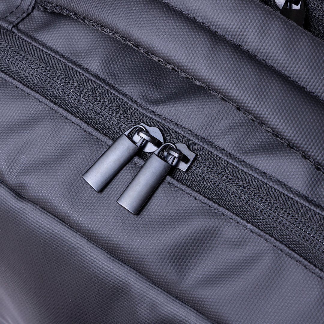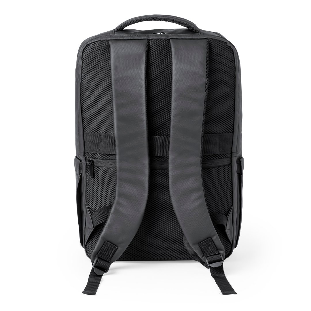Mochila de Antonio Miró de calidad premium en resistente polipiel de sobrio diseño en color negro. Con cierre de cremallera doble, bolsillo frontal y asa reforzada acolchada. Con acolchado ergonómico en espalda y cintas de hombros, incluye compartimento interior acolchado para portátil de hasta 15 pulgadas y para tablets de hasta 10 pulgadas. Además, con bolsillo antirrobo con cierre de cremallera en la parte trasera. Fundas interiores para bolígrafos y smartphone. Con logotipo de la marca en frontal.