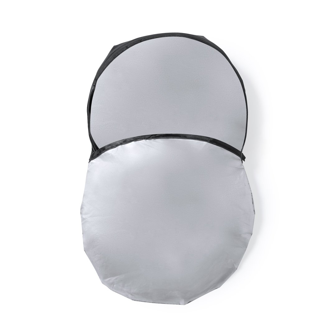 Original parasol plegable en resistente poliéster plateado. Ligero y en medidas 150 x 70 cm, válido para coches y furgonetas. Ribetes reforzados, con sencillo sistema de plegado y funda individual a juego. Presentación desplegado en plancha para fácil impresión, con fundas aparte.