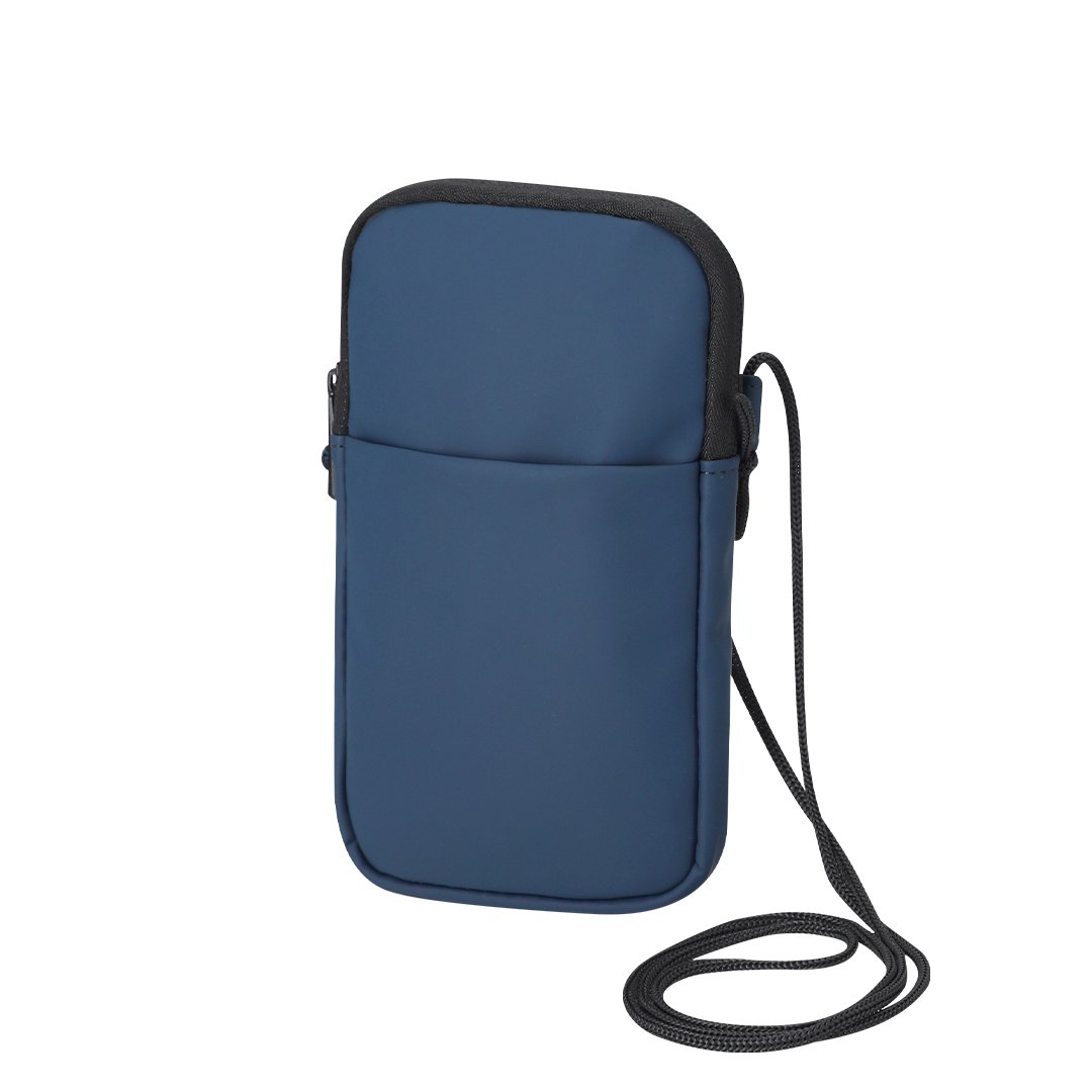 Clásico portamóvil, fabricado en suave y elegante PU. Compartimento principal con cierre de cremallera invisible y tirador metálico. Con cinta de cordón, bolsillo exterior abierto, e interior forrado.