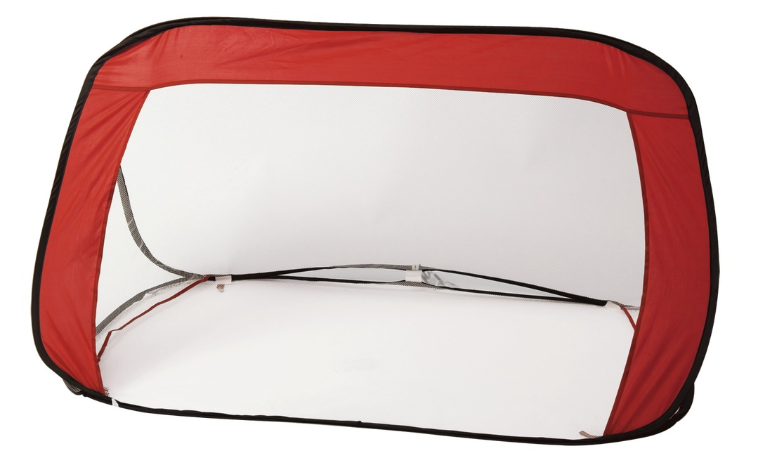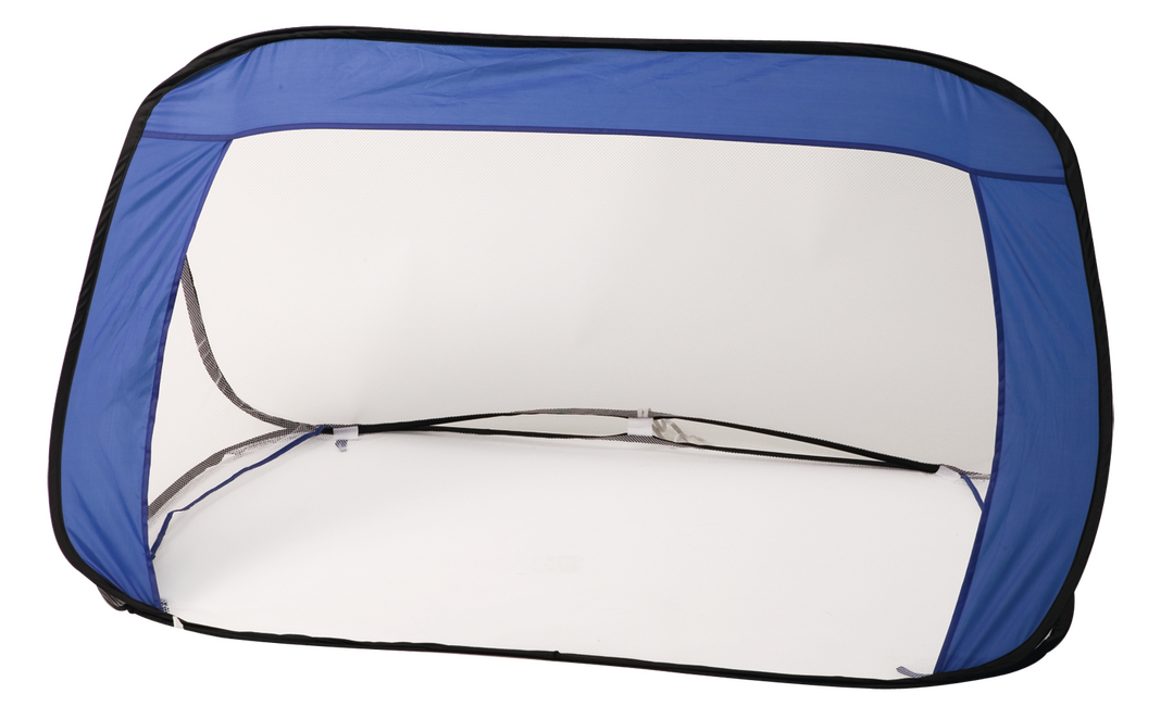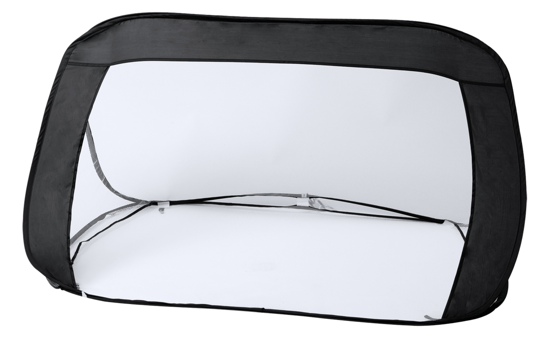 Divertida portería plegable de vivos colores en combinación de resistente nylon y tejido de redecilla. Con cómoda bolsa de transporte con asas.