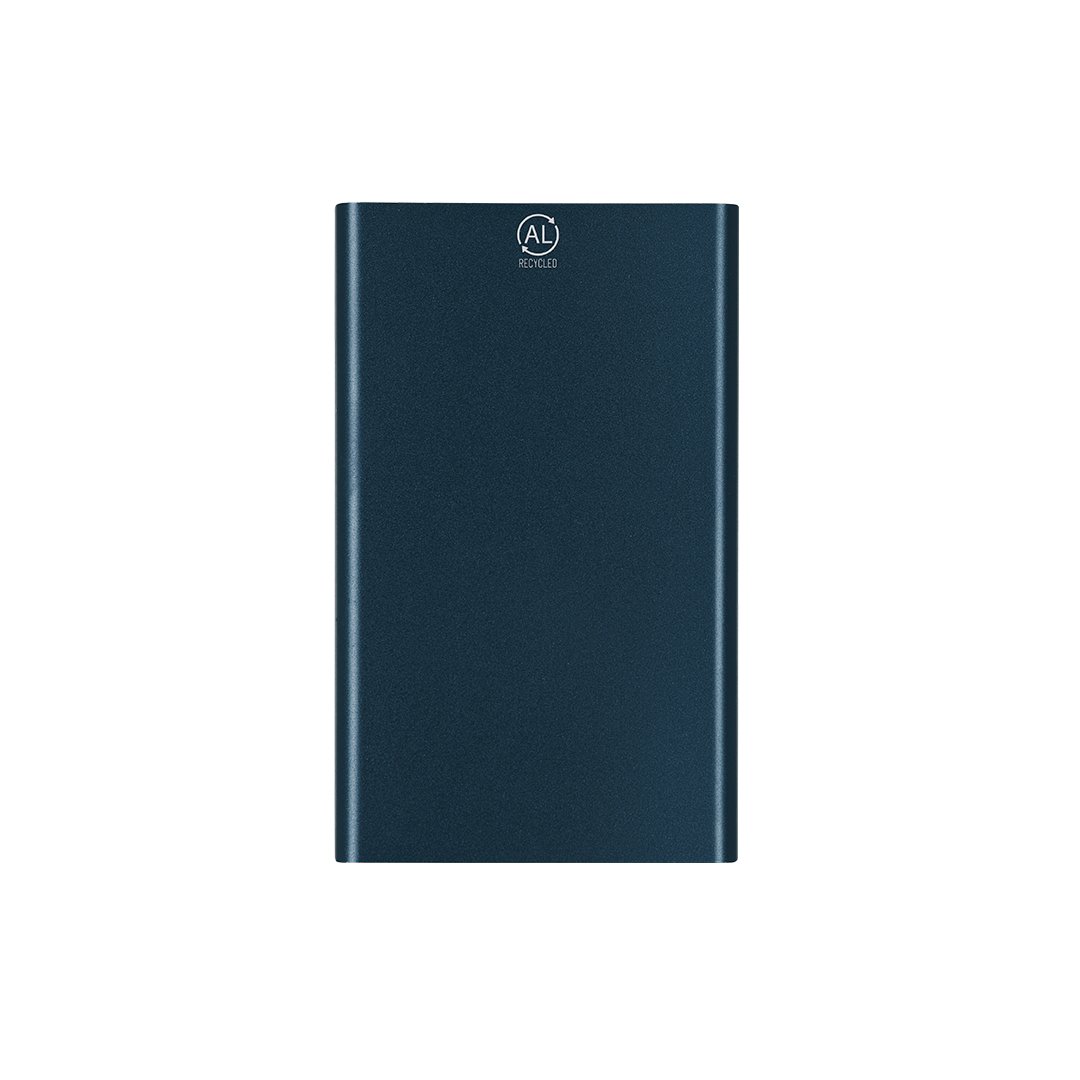 Batería auxiliar externa de 4.000 mAh en Aluminio Reciclado. Con salida USB y entrada/salida USB Tipo C. Indicadores LED de estado de carga y cable de carga Tipo C incluido. Incluye distintivo de Aluminio Reciclado.El Aluminio Reciclado es un material con posibilidades de reciclaje casi infinitas, sin perder sus propiedades originales y consumiendo menos energía en este proceso.Certificación GRS (Global Recycled Standard / Estándar de Reciclaje Global), que garantiza el origen reciclado del material usado para fabricar el producto.Entrada/Salida USB Tipo C: 5V DC 2.4ASalida USB: 5V DC 1ALas capacidades mostradas en todas nuestras baterías auxiliares externas son reales, incorporando todas ellas baterías de grado A y no recicladas, con una vida útil de al menos 500 ciclos de carga y según normativa CE.Además, están fabricadas conforme a los estándares RoHS y en cumplimiento con los siguientes requisitos de seguridad:Sistema de protección contra sobrecarga del power bank.Sistema de protección contra descarga completa que proporciona una mayor durabilidad del power bank.Sistema de bloqueo para evitar cortocircuitos.Sistema de transferencia de carga constante, acorde con la capacidad del dispositivo de destino.