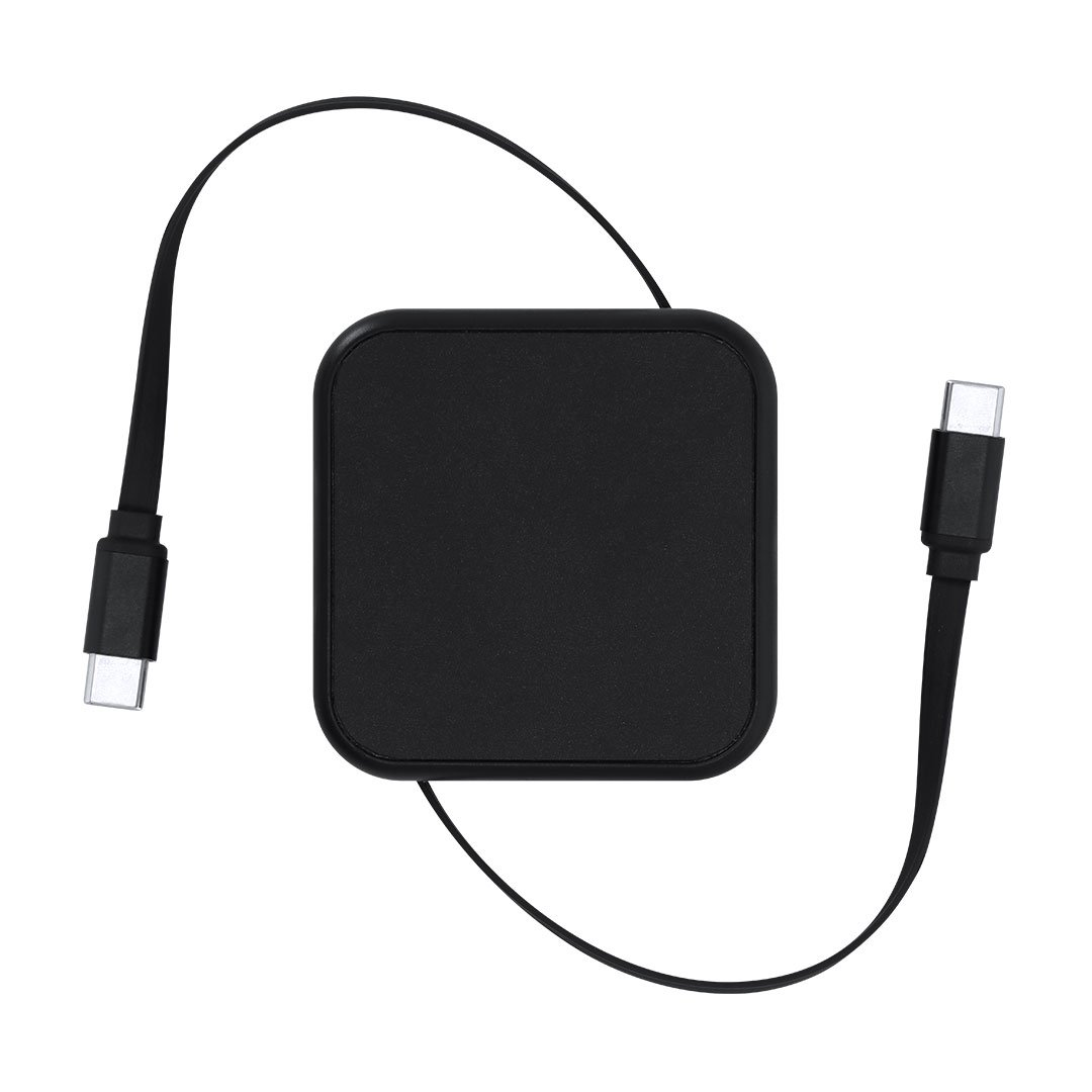 Sets de cables cargadores para tu smartphone fabricado en ABS reciclado (RABS). Cuenta con un cable retráctil de 100 cm de carga rápida y transferencia de datos USB-C de 100 W, junto con un adaptador USB-A y un adaptador microUSB/Lightning 2 en 1. El RABS es un plástico altamente reciclable de gran resistencia y con multitud de aplicaciones que lo convierten en una solución eco-friendly. En el interior, encontrarás un expulsor de la tarjeta SIM, almacenamiento para una nano SIM y una tarjeta SIM, y un soporte para teléfono integrado, perfecto para ver vídeos o hacer videollamadas. Fácil de transportar gracias a su diseño compacto.