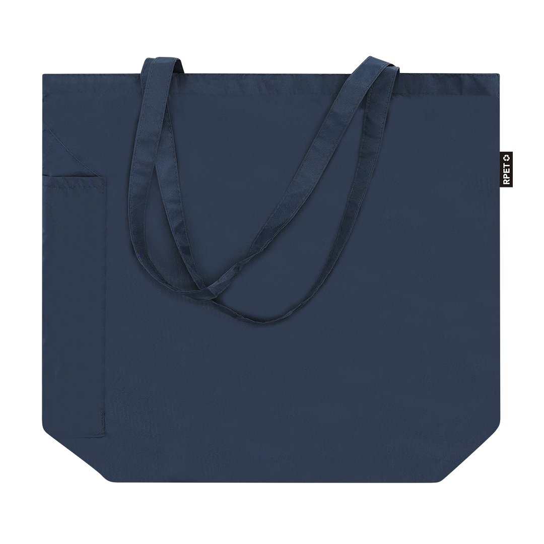 Set de paraguas y bolsa fabricado en RPET. Paraguas con practica bolsa con funcionalidad 2-1.Paraguas plegable con 100cm de diámetro. En material pongee 190T RPET y mango de suave ABS negro con cinta de muñeca para mayor seguridad. De apertura manual, con sistema antiviento y varillas en fibra de vidrio en color negro. Con etiqueta distintiva RPET.Bolsa fabricada en RPET Pongee 190T, con bolsillo en el lateral. Resistente a la lluvia. Con cremallera metalizada para guardar el paraguas y mantener seco el contenido de la bolsa. Ofrece una solución práctica y versátil para los días de lluvia, cuando no se está utilizando se enrolla actuando como funda para el paraguas. Con etiqueta distintiva RPET.