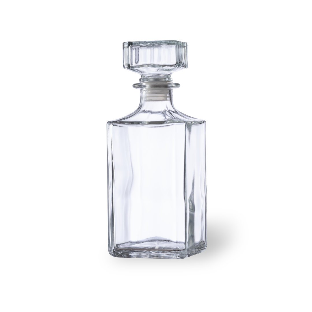 Set de whisky de sobrio diseño y fabricado en cristal. Incluye 4 vasos de 200 ml y decantador de 1 l, con tapón en cristal. Presentación en caja individual de diseño kraft.