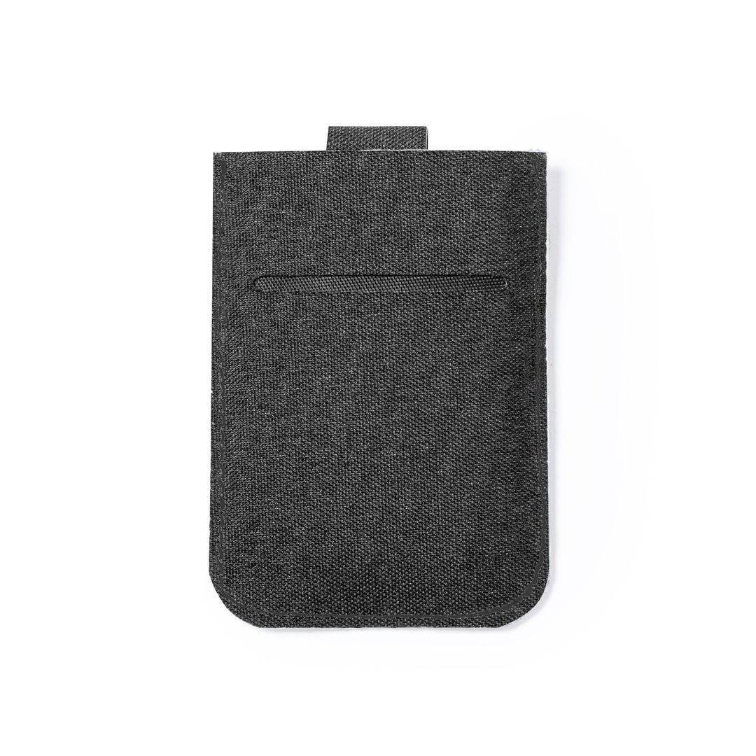 Elegante tarjetero fabricado en poliéster RPET de acabado en color negro. Con cierre imantado, capacidad para 5 tarjetas y mecanismo de extracción tirando de la cinta de cierre. Con tecnología de seguridad RFID (Identificación por Radio Frecuencia) que mantiene seguros tus dispositivos de transmisión de identidad. Distintivos RPET y RFID en el exterior. El material RPET se elabora a partir de plástico reciclado, para así fomentar la reutilización de residuos plásticos y ayudar a la sostenibilidad del planeta.