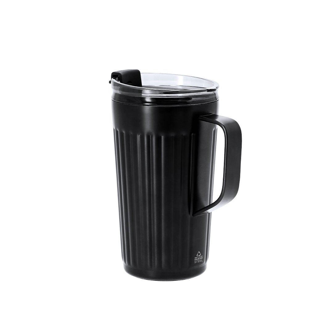 Taza térmica fabricada en Acero Inox Reciclado de doble pared y 350 ml de capacidad. Exterior en acabado biselado en color metálico mate. Incluye tapadera con sistema de cierre a presión transparente con orificio especial para pajitas, tapón de silicona y dosificador de fácil apertura abatible, libre de BPA. Base antideslizante de silicona y distintivo de Acero Inox Reciclado. El acero es uno de los materiales más demandados y que puede encontrarse casi en todas partes, desde productos de uso diario a grandes construcciones. Con innumerables propiedades, entre las que cabe destacar la durabilidad y su alto grado de reutilización, convirtiéndolo en una alternativa muy valorada en soluciones de sostenibilidad. Debidamente tratado, permite obtener nuevos recursos de infinita utilización.