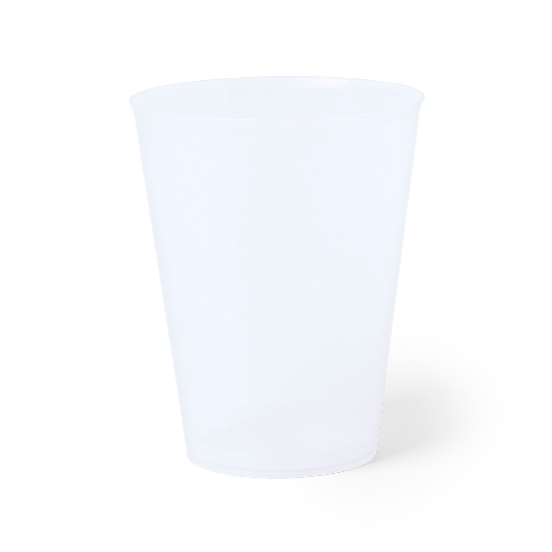 Vaso de 500ml de capacidad en resistente y flexible material PP. Reutilizable y en acabado translúcido.